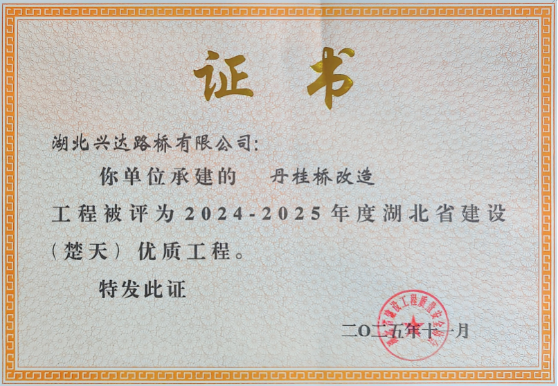 歲末冬深,咸寧大地暖意融融。當(dāng)2025年12月的晨光灑向淦河,一座橫跨碧波的橋梁迎來(lái)了榮耀時(shí)刻——丹桂橋改造工程憑借過(guò)硬質(zhì)量、創(chuàng)新工藝與民生價(jià)值,在2024-2025年度湖北省建設(shè)工程評(píng)選中,成功斬獲“楚天杯”優(yōu)質(zhì)工程大獎(jiǎng)。這一湖北省建筑行業(yè)的質(zhì)量最高榮譽(yù),不僅為咸寧城市建設(shè)鐫刻下閃亮印記,更讓這座煥新的橋梁,成為串聯(lián)交通脈絡(luò)、溫暖市民出行的幸福紐帶。