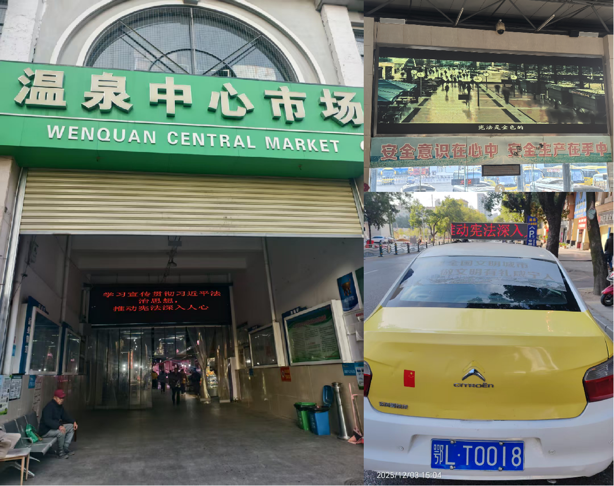 集團(tuán)在辦公樓、集貿(mào)市場(chǎng)、客運(yùn)站等重點(diǎn)區(qū)域張貼海報(bào)、播放視頻,并在出租車上滾動(dòng)播放宣傳標(biāo)語(yǔ),廣域營(yíng)造憲法宣傳濃厚氛圍。同時(shí)依托集團(tuán)網(wǎng)站、微信公眾號(hào)及內(nèi)部工作群持續(xù)推送憲法知識(shí),讓法治宣傳“觸手可及”,不斷提升職工和群眾的憲法認(rèn)知度與參與度。
