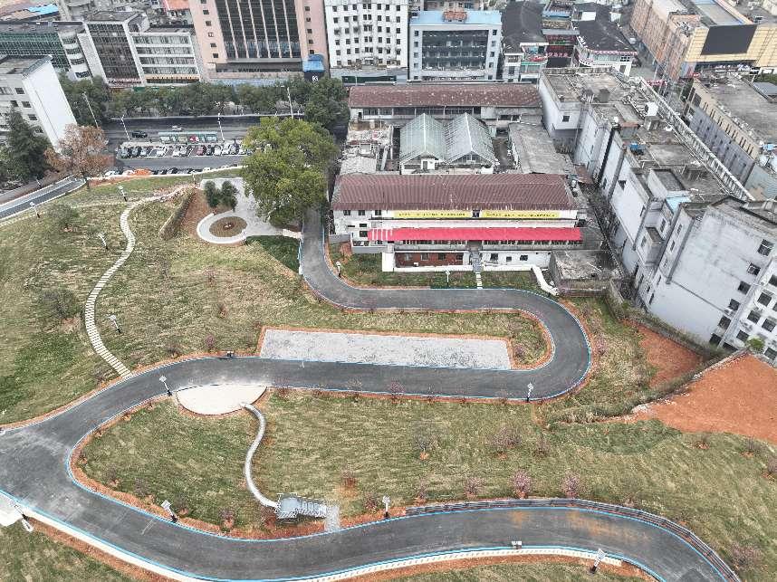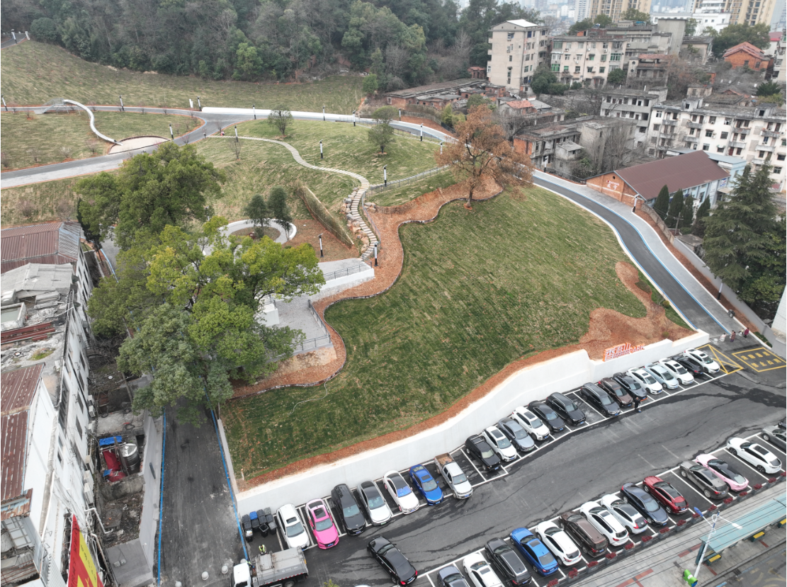 香吾山公園位于咸安區(qū)核心地帶,原址為一片疏于管理的丘陵荒地。項目啟動以來,政府統(tǒng)籌推進山體修復、植被保育和水系治理,新建及改建公園道路453米,道路寬度4米及5.5m寬,人行道140米,寬度2.5米,游步道142米,新增公園綠地面積12931平方米,太陽能路燈28個,累計栽植喬木315株、地被植物1664平方米,建成453米生態(tài)步道,公園配套50個停車位,彰顯人性化設計。